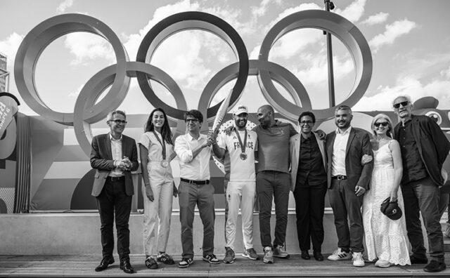 Official Installation of the Olympic Rings and Agitos – Pleyel Urban Footbridge