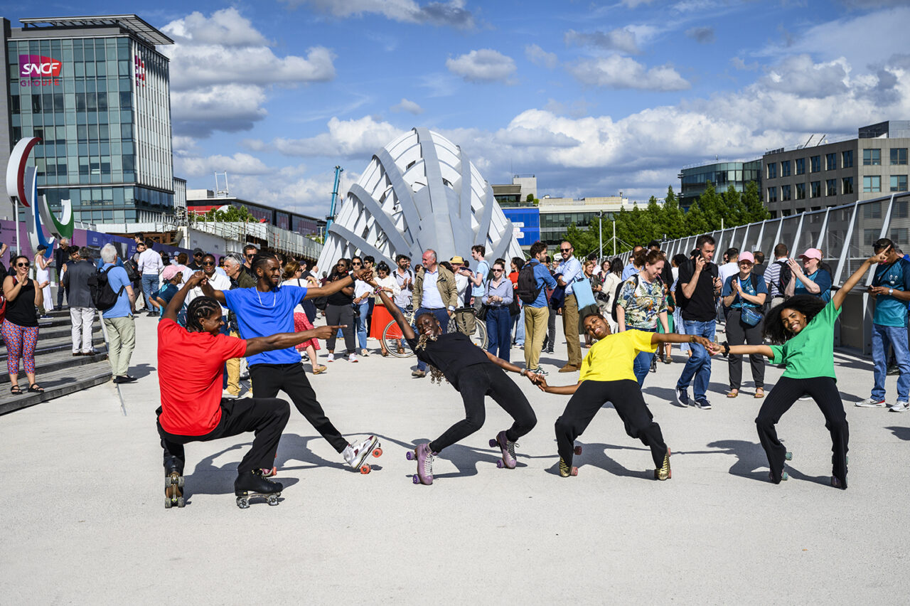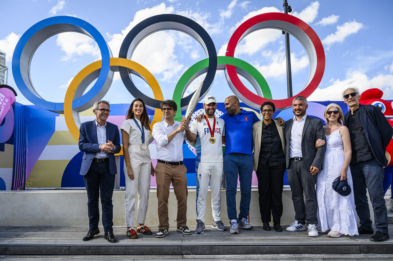 À l’occasion de la Journée Olympique, Marc Mimram a eu l’honneur d’assister au dévoilement des anneaux et agitos olympiques sur ce franchissement emblématique de Saint-Denis – un projet que nous avons conçu et réalisé pour le compte de Plaine Commune.